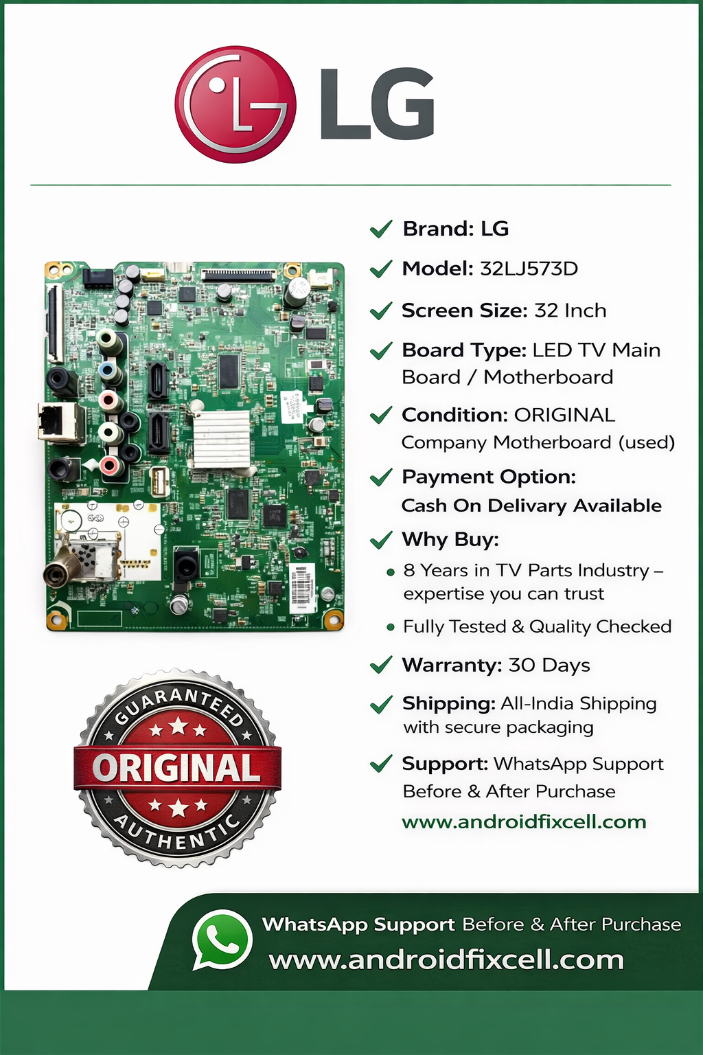 LG 32LJ573D LED TV MOTHERBOARD