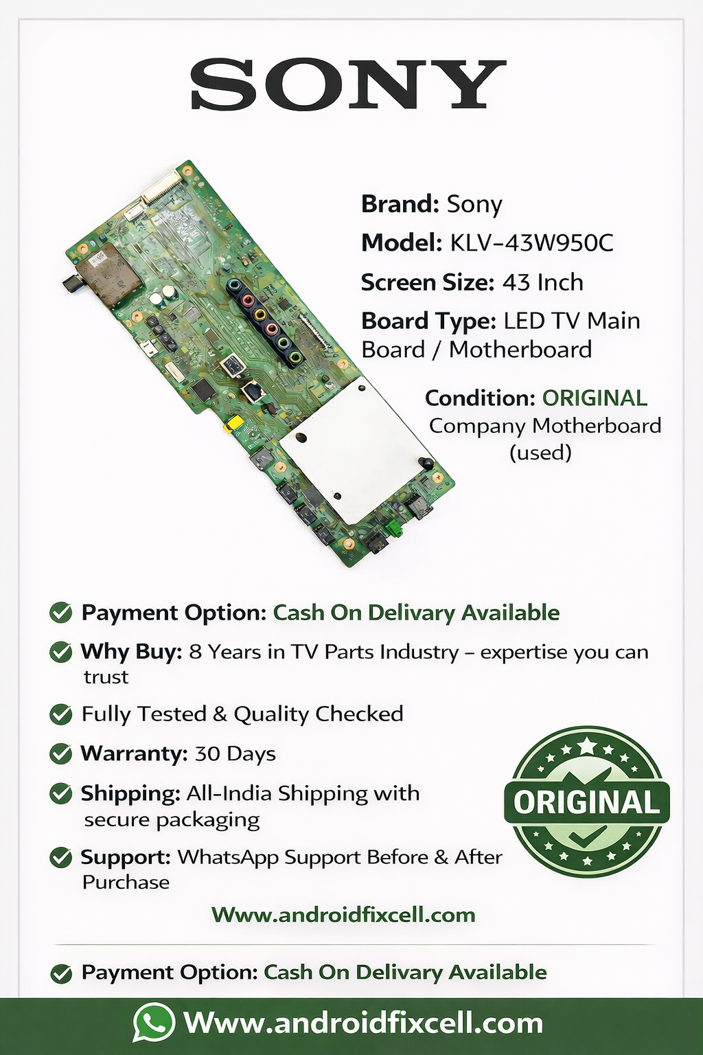 SONY KDL-43W950C LED TV MOTHERBOARD